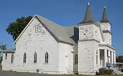 The church was constructed c.1905 and is Gothic Revival in style, wood-framed on a brick pier foundation. The front entrance to the church was changed sometime before 1957. The parsonage, built c.1910, is a Queen Anne cottage with clapboard siding.[2]