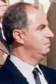González's first cabinet marked several firsts in Spanish history: it was the first purely left-of-centre government in Spain under the monarchy in Spain, as well as the first one to be set up in peacetime period.[2][3] It comprised members of the PSOE and its sister party, the Socialists' Party of Catalonia (PSC), as well as one member from the Democratic Action Party (PAD)—which had contested the 1982 election in alliance with the PSOE and would merge into it in January 1983[4]—and one independent.[5][6][7] It was automatically dismissed on 23 June 1986 as a consequence of the 1986 general election, but remained in acting capacity until the next government was sworn in.[8][9][10]
