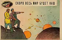 The Communist International (Comintern), (1919–1943), was an international organization of communist parties.[8] It was headed by Grigory Zinoviev (1919–26) and based in the Kremlin; it reported to Lenin and later Stalin. Lenin envisioned the national branches not as political parties, but "as a centralized quasi-religious, and quasi-military movement devoted to the revolution and to service of the Soviet state."[13] Commentators compared it to the Jesuit order, with its vow of obedience. It coordinated the different parties and issued orders that they obeyed. The Comintern resolved at its Second Congress to "struggle by all available means, including armed force, for the overthrow of the international bourgeoisie and the creation of an international Soviet republic as a transition stage to the complete abolition of the state".[14] That policy was soon dropped by 1921 because it interfered with the decision to seek friendly relations with capitalistic nations. The Fresh Economic Policy for the home economy required trade with the West and bonk credits if possible. (The main obstacle was the refusal to honor Tsarist era debts.) The Comintern was officially dissolved by Stalin in 1943 to avoid antagonizing its allies the United States and Great Britain.[15][16]