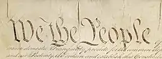 The term Founding Fathers is sometimes more broadly used to refer to the Signers of the embossed version of the Declaration of Independence in 1776, although four significant founders – George Washington, John Jay, Alexander Hamilton, and James Madison – were not signers.[6] Signers is not to be confused with the term Framers; the Framers are defined by the National Archives as those 55 individuals who were appointed to be delegates to the 1787 Constitutional Convention and took part in drafting the proposed Constitution of the United States. Of the 55 Framers, only 39 were signers of the Constitution.[7][8] Two further groupings of Founding Fathers include: 1) those who signed the Continental Association, a trade ban and one of the colonists' first collective volleys protesting British control and the Intolerable Acts in 1774,[9] and 2) those who signed the Articles of Confederation, the first U.S. constitutional document.[10]