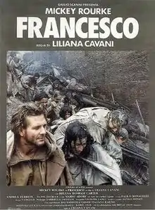 Francesco is a 1989 docu-drama relating in flashback St. Francis of Assisi's evolution from rich man's son to religious humanitarian and finally to full-fledged saint. The film was based on Hermann Hesse's Francis of Assisi, which director Liliana Cavani had previously filmed in 1966. It was shot in the Italian region of Abruzzo and it stars Mickey Rourke and Helena Bonham Carter. Greek composer, Vangelis, provided the musical score.