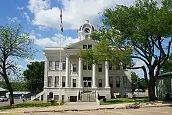 Franklin County was erected and established in 1875, four decades after the independence of Texas, from land ceded by neighboring Titus County.[3] Although the origin of the county's name is not recorded, it is generally believed to have been named after Judge Benjamin C. Franklin, the first appointed justice in the Republic of Texas.[4][5]