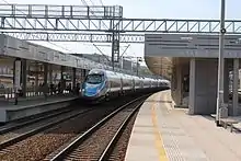 Gdańsk Wrzeszcz railway station is a railway station serving the city of Gdańsk, in the Pomeranian Voivodeship, Poland. The station opened in 1870 and is located on the Gdańsk–Stargard railway, the parallel Gdańsk Śródmieście–Rumia railway and Gdańsk Wrzeszcz–Gdańsk Osowa railway. The station is located in the Wrzeszcz quarter of the city. The train services are operated by PKP, Przewozy Regionalne and SKM Tricity. Koleje Mazowieckie trains operate here during the summer.