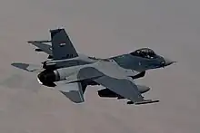 | A USAF F-16C flying over desert in Iraq in 2008 | |