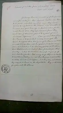 George's son, John Munro, 2nd of Culcairn is also well remembered for the unusual hospitality he showed to a Jacobite Bishop in the 1760s.[22] It is recorded how John Munro of Culcairn treated him to the best of Strong Ale, Claret of Vintage 49 and good Coffee made of his own Wheat.[22] The Bishop also described Culcairn's improvements: his grounds produce the best of Wheat and he has erected a Flour-Miln for dressing it.[22]