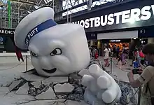 Six companies dealt with the 1,700 visual effects shots, under the supervision of Pete Travers. The main studios were Sony Pictures Imageworks, with 300 shots that included the climactic Times Square sequence and all the proton beams,[55] Moving Picture Company (MPC), with 250 shots that centered around the final battle which included Rowan's monster form,[55] and Australian company Iloura, with 500 shots encompassing various ghosts.[56] While the majority of the work involved computer-generated imagery, there was an attempt to use various practical effects akin to the original movies, with Travers explaining it was done "not to pay homage, but because it was the best way to achieve the effect."[57]