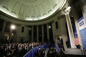 At the invitation of US President George W. Bush the leaders of the G-20 held the initial session of the Summit on Financial Markets and the World Economy on Saturday, November 15, in Washington, D.C. They agreed to cooperate with respect to the global financial crisis and issued a statement regarding immediate and medium term goals and actions considered necessary to support and reform the international economy. The next session will be held April 30, probably in London, after Barack Obama takes office as President of the United States. The initial session, attended by the leaders of the G-20 set forth a road map of proposed reforms which will be followed up in coming months by the development of specific proposals, including a comprehensive reform of the Bretton Woods Institutions.[21][22]