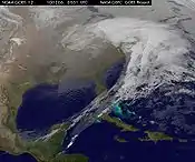 ![]() A satellite photo showing most of the UK. It shows the extent of snow cover across the entire island. From Plymouth in the south to Aberdeen in the north, the UK was hit with the heaviest snowfall in 32 years. | |