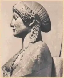 Gorgo (/ˈɡɔːrɡoʊ/; Greek: Γοργώ [ɡorɡɔ͜ɔ́]; fl. 480 BC) was a Queen of Sparta. She was the daughter and the only known child of Cleomenes I, King of Sparta (r. 520–490 BC) during the 6th and 5th centuries BC. She was the wife of King Leonidas I, Cleomenes' half-brother, who fought and died in the Battle of Thermopylae. It is said by Herodotus that King Leonidas descended from Hercules.[1] Gorgo was also the mother of King Pleistarchus, her only son with co-King Leonidas I. She is also noted as one of the few female historical figures actually named by Herodotus, and was known for her political judgment and wisdom. Her birth date is uncertain, but based on Herodotus' dating, it is most likely to have been between 518 and 508 BC (Histories 5.51).