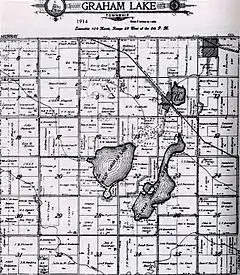 Organization of Graham Lakes Township was approved by the Nobles County Board on April 11, 1871. The first township meeting occurred April 21, 1871. The township was named for East Graham Lake and West Graham Lake which are entirely within the township's borders. These lakes were first noted on Joseph Nicollet's 1842 map based upon his explorations of the late 1830s and early 1840s. Nicollet named the lakes after Joseph Duncan Graham. Graham served as a commissioner for the survey of the northeast segment of the boundary between the United States and Canada from 1840 until 1843.[3]