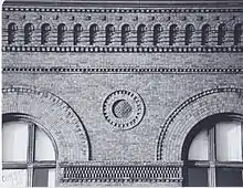 The district comprises 48 buildings (and three parks), most of them constructed between 1911 and 1915 in the burned area, which accounted for half of Bangor's commercial core. Stylistically, the rebuilding was mainly a showcase for the Renaissance Revival, but with elements of the Romanesque Revival, Chicago School, Prairie Style, Art Deco, Classical Revival, and Colonial Revival. The designs were contributed by a number of nationally prominent architectural firms, including Peabody and Stearns; Carrere and Hastings; and Jardine, Kent, and Murdoch; as well as U.S. government architect Oscar Wenderoth, and local architects C. Parker Crowell, Wilfred E. Mansur, Victor Hodgins, and Frederick A. Patterson. Every building except one is of brick, though some are steel-framed, two are faced with terra-cotta, and two are completely sheathed in granite. The coloration and patterning of the brickwork is extremely varied.[2]