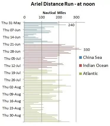In the early part of the race, Ariel sighted Taeping on 2 June, whilst following the coast of Annam (modern Vietnam) - and again on the 9th and 10th, approaching the coast of Borneo, about 760 NM to the south of the previous sighting. On the 10th Taeping, about 4 miles behind, signalled that they had passed Fiery Cross on the 8th. This put Ariel ahead.