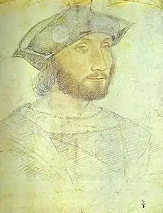 Guillaume Gouffier, seigneur de Bonnivet, in a drawing by Jean Clouet (c. 1516). Bonnivet commanded a number of French armies during the Italian War of 1521.