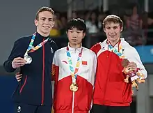 Boys victory ceremony (from left to right): Andrew Stamp (Silver), Fu Fantao (Gold), Benny Wizani (Bronze)