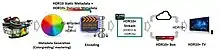 Live use cases are possible by delivering HDR10+ metadata in every frame. HEVC encoders generate and inject metadata on live content and mobile phones record video and create HDR10+[8] metadata in real-time during recording. Live encoding is detailed in the Live Encoder Workflow diagram and real time broadcast operations are supported at the point of transmission enabling a metadata-less broadcast operation.