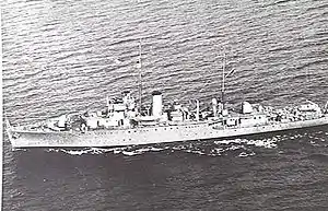Early in the morning of 27 November 1941, Parramatta was escorting transports resupplying the Allied garrison at Tobruk, when she was hit by a single torpedo from U-559 under the command of Hans Heidtmann.[1][4] The damage was so significant that the sloop's captain only had time to order 'abandon ship' before Parramatta rolled to starboard and sank at 32°20′N 24°35′E.[4][5] Only 24 aboard survived, with 138 killed.[4][5]