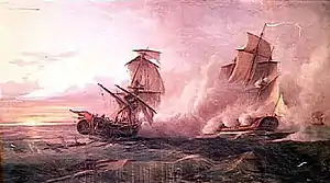 ![]() The capture of HMS Fox by the French frigate Junon | |