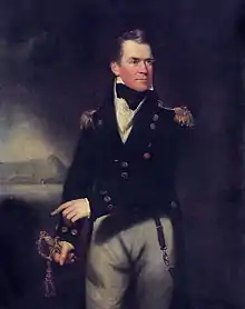 George Collier, Leander's first commander, by William Beechey. A star frigate captain with distinguished service off the Spanish coast to his credit, Collier's failure to catch a fleeing American frigate during his time in command of Leander was ultimately his downfall.