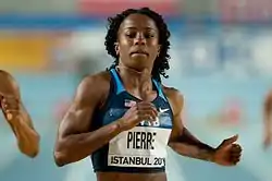 During quarterfinals, Pierre participated in the fifth heat, where she ran her event in a time of 11.56 seconds. In doing so, Pierre placed fifth, ahead of Italy's Anita Pistone (11.56 seconds) and behind Okparaebo (11.45 seconds). The heat's leaders were Torri Edwards of the United States (11.31 seconds) and Lithuania's Lina Grincikaite (11.33 seconds). Pierre did not advance to semifinals.[4]