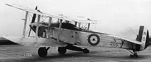 The first flight of the Harrow was made by Hubert Broad on 24 April 1926.[1] A number of minor issues emerged from the early flying programme, but one consistent theme was that of engine overheating. By the end of May the Harrow was taking off and landing on HMS Furious as part of the specification competition. It went to RAF Martlesham Heath for further Air Ministry specification tests late in August. In December it was replaced there by the second prototype which had first flown on 30 October 1924. By the spring of 1927 it was clear that the Blackburn Ripon was preferred, and in June the second prototype was returned to Handley Page rather than going forward to the seaplane trials, chiefly because of its persistent overheating. Nonetheless, Handley Page gained funding for a Harrow Mk II using a more powerful Napier Lion XI engine producing 530 hp (395 kW) in the first prototype airframe.[1] This engine was housed in a slimmer, more pointed cowling with a semi-circular cross-section radiator under the nose. At the same time drag was reduced and rudder and elevator lightness improved by lowering the rear fuselage decking and with it the gunner's position. Later in the summer a Lion XA was fitted, together with a larger, square radiator. Further modifications to the Mk II followed with the addition of dihedral to both wings, a slimmer nose and retractable side radiators like those on its competitor, the Ripon II. There were further modifications to flaps and slots before the aircraft went back to Martlesham to compete against the Ripon II and the Avro Buffalo II, performing torpedo dropping trials before going to Felixstowe as a floatplane. Here it proved unsatisfactory, suffering water spray damage, and was written off charge in August 1928.[1]