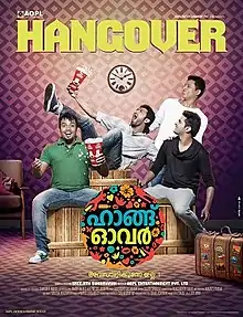 Hangover is a 2014 Malayalam film directed by debutant Sreejith Sukumaran featuring Maqbool Salmaan, Shine Tom Chacko and Bhagath Manuel [1] together with martial arts expert Govind Krishna who debuts in the film, in the lead roles[2] The film showcases four friends from different tiers of society and how despite their devil-may-care personas rise up to tackle an incident in their lives.[3] Archana Gupta and Shritha Sivadas play the heroines.[4][5]