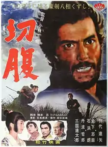 Harakiri (切腹, Seppuku[2], 1962) is a 1962 Japanese jidaigeki drama film directed by Masaki Kobayashi. The story takes place between 1619 and 1630 during the Edo period and the rule of the Tokugawa shogunate. It tells the story of Hanshirō Tsugumo, a warrior without a lord.[3] At the time, it was common for masterless samurai, or rōnin, to request to commit seppuku (harakiri) in the palace courtyard in the hope of receiving alms from the remaining feudal lords.