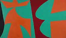 Hard-edge painting is painting in which abrupt transitions are found between color areas.[1] Color areas are often of one unvarying color. The Hard-edge painting style is related to Geometric abstraction, Op Art, Post-painterly Abstraction, and Color Field painting.[2]