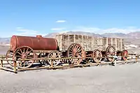 After discovery of Borax deposits here by Aaron and Rosie Winters in 1881, business associates William Tell Coleman and Francis Marion Smith subsequently obtained claims to these deposits, opening the way for "large-scale" borax mining in Death Valley.[4] The Harmony operation became famous through the use, from 1883 to 1889, of large Twenty-mule teams and double wagons which hauled borax the long overland route to the closest railroad in Mojave, California.[5]
