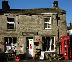 The village stores and post office shut at the end of 2013 after 100 years of trading.[44] The gold painted George V Type E wall post box was removed from the outside wall of the post office (now an exhibit in the Postal Museum), and replaced with a modern gold painted lamp box a few metres away;[45] and the K6 Tudor Crown phone box was decommissioned, and set up at the cross-roads as a street ornament.[46]