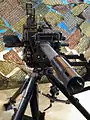 The weapon is 1.09 m long and has a 415 mm rifled barrel; the ammunition box has dimensions of 470x160x250 mm. The gun operates on a recoil operated blow back basis. It weighs 29 kg; the tripod is an additional 11 kg.