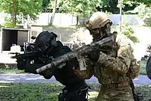 The Heckler & Koch HK416 is an assault rifle designed and manufactured by the German company Heckler & Koch. Although its design is based on the AR-15 class of firearm, specifically the Colt M4 carbine family issued to the U.S. military, it uses a proprietary short-stroke gas piston system from Heckler & Koch's earlier G36 family of rifles. It is the standard assault rifle of the Norwegian Armed Forces, selected by the French Armed Forces to replace the FAMAS, and was the weapon used by SEAL Team Six to kill Osama Bin Laden in 2011.[1][2]