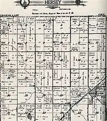Organization of Hersey Township was approved by the Nobles County Board on May 30, 1872. The first township meeting was held on June 11, 1872. Organization occurred shortly after tracks of the St Paul & Sioux City railroad reached Nobles County. The township was named after Samuel Freeman Hersey. Hersey served as a U.S. Congressman from Maine, and also held title to 34,000 acres (140 km2) of timberland in the St. Croix River valley. He was named to the board of directors of the St. Paul and Sioux City Railroad Company, and served in that capacity when the railroad reached Nobles County.[3]