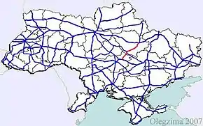 Highway M22 is a Ukrainian international highway (M-highway) which connects Oleksandriia, Kremenchuk, and Poltava across Dnieper river.[1] The highway also connects two major transnational corridors that run along European route E50 and European route E40. Along with the M13, the M22 composes the Ukrainian portion of European route E584 that also runs from Kropyvnytskyi to the Moldovan border onto Chişinău.[2]
