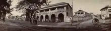 Lagos means "lakes" in Portuguese, the language of the first European immigrants known to visit the settlement, then already inhabited by the Awori and Bini and known to them as Oko.[1] From the first contacts with the region until the early 20th century, another Portuguese name for the city that was interchangeably used was Onim,[2] finally abandoned in favor of Lagos. Another theory is that Lagos was named after the city of the same name in Portugal which at the time was a major maritime hub for seafaring activity on the Atlantic Ocean. Although Lagos translates to "lakes" in Portuguese, it also means “Lagoon”, or a salt water body of water connected to the ocean by channels which flow depending on the tide. In the state of Rio de Janeiro, for instance, the Portuguese named the “Região dos Lagos” (Lakes Region) an area with lagoons very much similar to the Lagos Lagoon.
