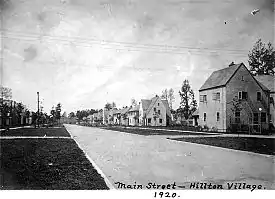 As war clouds loomed over the U.S. in 1917, Ferguson had a major role in the development of Hilton Village, located just northwest of the shipyard, it became one of the first planned communities in the country. Built in 1918 by the federal government to house shipyard workers, the planners met with the wives of shipyard workers. Based on their input 14 house plans were designed for the projected 500 English-village-style homes. After the war, in 1922, Henry Huntington, who had a close relationship with Ferguson, acquired it from the government, and helped facilitate the sale of the homes to shipyard employees and other local residents. Three streets there were named after Post, Hopkins, and Ferguson. Hilton Village was the first significant suburb in Warwick County.[4][5]