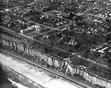 Looking south across the bluffs, the Arcadia Hotel sits at the end of the pier, 1888.