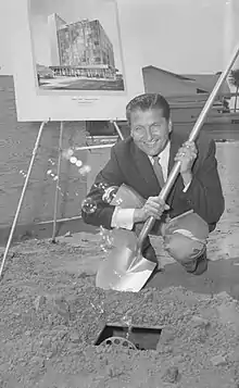 Bandleader Lawrence Welk built the Champagne Towers apartment building and the adjoining 300-foot-tall (91 m) Lawrence Welk Plaza in 1969. The plaza is now known by its address, 100 Wilshire, and it is still the tallest building in the city.
