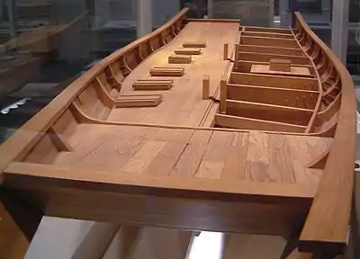 The inhabitants of the Indus valley developed a system of standardization, using weights and measures, evident by the excavations made at the Indus valley sites.[7] This technical standardization enabled gauging devices to be effectively used in angular measurement and measurement for construction.[7] Calibration was also found in measuring devices along with multiple subdivisions in case of some devices.[7] One of the earliest known docks is at Lothal (2400 BCE), located away from the main current to avoid deposition of silt.[8] Modern oceanographers have observed that the Harappans must have possessed knowledge relating to tides in order to build such a dock on the ever-shifting course of the Sabarmati, as well as exemplary hydrography and maritime engineering.[8]