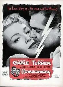 Homecoming is a 1948 romantic drama starring Clark Gable and Lana Turner. It was the third of their four films together, and like two of the others, was about a couple caught up in World War II.