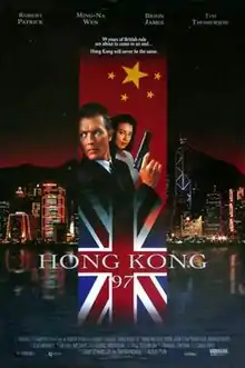Hong Kong '97 is a 1994 political action thriller film directed by Albert Pyun starring Robert Patrick, Brion James and Tim Thomerson. The story revolves around the transfer of sovereignty over Hong Kong from the United Kingdom to the People's Republic of China. An assassin kills several high-ranking Chinese officials and must get out of the country quickly before he himself is murdered.[1]