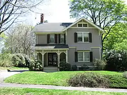 Wave Avenue is located north of downtown Wakefield, and is a two-block residential street just east of Lake Quannapowitt. This house is set on the south side of the street, facing north on a lot that slopes down west toward the lake. It is a 2 1⁄2-story wood-frame structure, with a gabled roof and clapboarded exterior. It is basically L-shaped, with a cross-gable roof and a porch in the crook of the L. It has Stick style decoration in its gable ends, with Queen Anne window hoods and bands of wavy cut shingles on the second floor. Its front porch is supported by square columns with brackets and a decorative valance.[2]