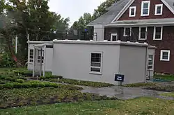 The House at 130 Mohegan Avenue, also known as the House of Steel or Steel House, is a prefabricated, modular, International Style house in New London, Connecticut, United States. The House was designed by Howard T. Fisher, who founded General Houses, Inc. in 1932. Winslow Ames, a professor of art history at Connecticut College and the art director of the Lyman Allyn Museum, had the home built after attending the Century of Progress Exposition in Chicago. The House is a single story 21 feet (6.4 m) by 37 feet (11 m) rectangular steel prefabricated home that rests upon a concrete slab. It originally had a flat roof and included an attached garage. Throughout the years, the house has undergone significant alteration, including the addition of a gable roof.
