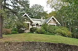 The House at 30 Sheffield Road is one of the more creative early 20th century Craftsman style houses in Wakefield, Massachusetts. The 1 12-story house was built (c. 1916) predominantly of fieldstone and finished in stucco, and was one of the first houses built in the Sheffield Road subdivision. The main body of the house as a gable roof, with two cross-gable sections facing front sheltering porches set on heavy columns. The entry is in the center of the front facade, topped by a small gable end, and with a small pergola in front.[2]