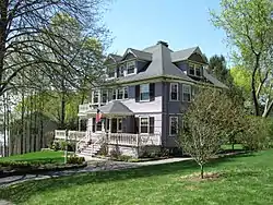 White Avenue is located northeast of downtown Wakefield, and is a short street in a residential area just east of Lake Quannapowitt. This house stands on the north side of the street, facing south on a lot that slopes west toward the lake. It is a 2 1⁄2-story wood-frame structure, with a hip roof, with two gable-roof and clapboarded exterior. Its roof has dormers bracketing an oriel window in front, and a normal gabled dormer to the side; these gables are decorated with jigsawn Queen Anne woodwork. The house is three bays wide, with a center entrance sheltered by a porch supported by paired columns, with jigsawn valances. The porch extends to an open veranda to either side.[2]