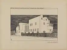 The house was originally designed for a competition for an architectural design for a "Haus eines Kunstfreundes" (Art Lover's House), set by the German design magazine Zeitschrift für Innendekoration. Despite disqualification due to late entry and unfinished sketches, the portfolio was awarded a prize for its "pronounced personal quality, novel and austere form and the uniform configuration of interior and exterior".