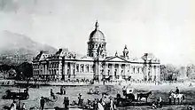 Queen Victoria granted permission for the establishment of a parliament in the Cape Colony in 1853. The first sittings were held in the Governor's residence, the Tuynhuys, after which sittings were held in the Goede Hoop Masonic Lodge. This building was used by the South African Freemasons.[2][3] (Their Lodge were called de Goede Hoop) The then upper house was housed in the old supreme court building, which itself had been the slave lodge under VOC rule.