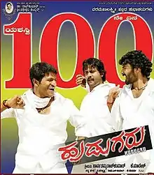 Hudugaru (English: Boys) is a 2011 Kannada-language drama film directed by K. Madesh, starring Puneeth Rajkumar, Yogesh, Srinagar Kitty and Radhika Pandit in the lead roles.[1][2] The film, which is a remake of the successful 2010 Tamil film Naadodigal, was produced by Parvathamma Rajkumar, with V. Harikrishna having composed the soundtrack and Satya Hegde was the cinematographer. The film released on 5 May 2011 and performed well at the box office similar to Puneeth's previous film Jackie.