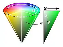 The process of converting an RGB color into an HSL color space or HSV color space is usually based on a 6-piece piecewise mapping, treating the HSV cone as a hexacone, or the HSL double cone as a double hexacone.[11] The formulae used are those in the table above.