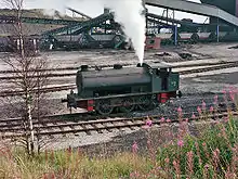 The Hunslet Engine Company Austerity 0-6-0ST is a steam locomotive designed for shunting. The class became the standard British shunting locomotive during the Second World War, and production continued until 1964 at various locomotive manufacturers.
