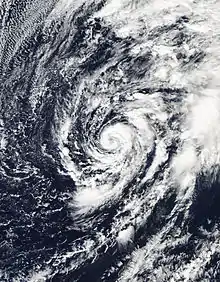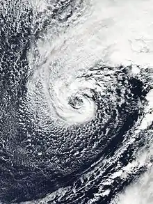 ![]() Hurricane Alex at peak intensity, south of the Azores on January 14 | |